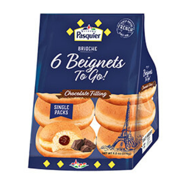 Pasquier's Brioche Beignets To Go offers the classic French beignet flavor in a handy, snack-sized version. Made from soft, fluffy brioche dough, each beignet is generously filled with rich, smooth chocolate, providing a delicious and satisfying bite. The airy brioche pairs perfectly with the creamy chocolate center, creating a balanced dessert that is both comforting and easy to enjoy.